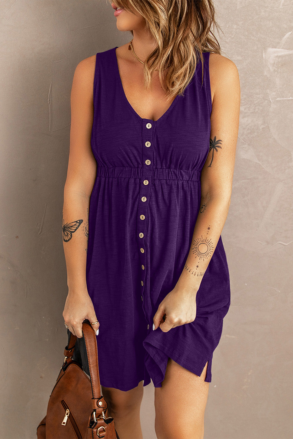 Button Front Empire Waist Sleeveless Slit Magic Dress