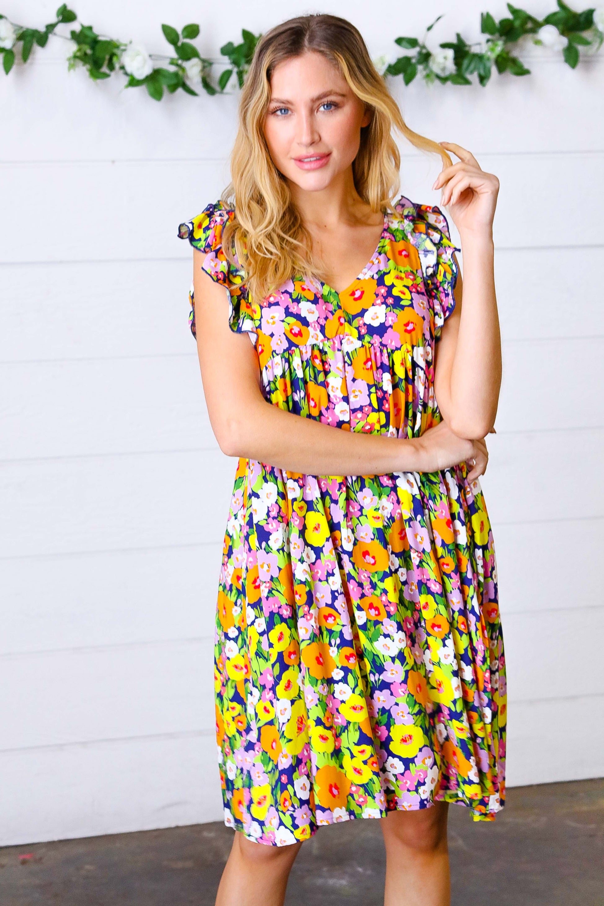 Indigo & Lemon Floral Babydoll Ruffle Dress