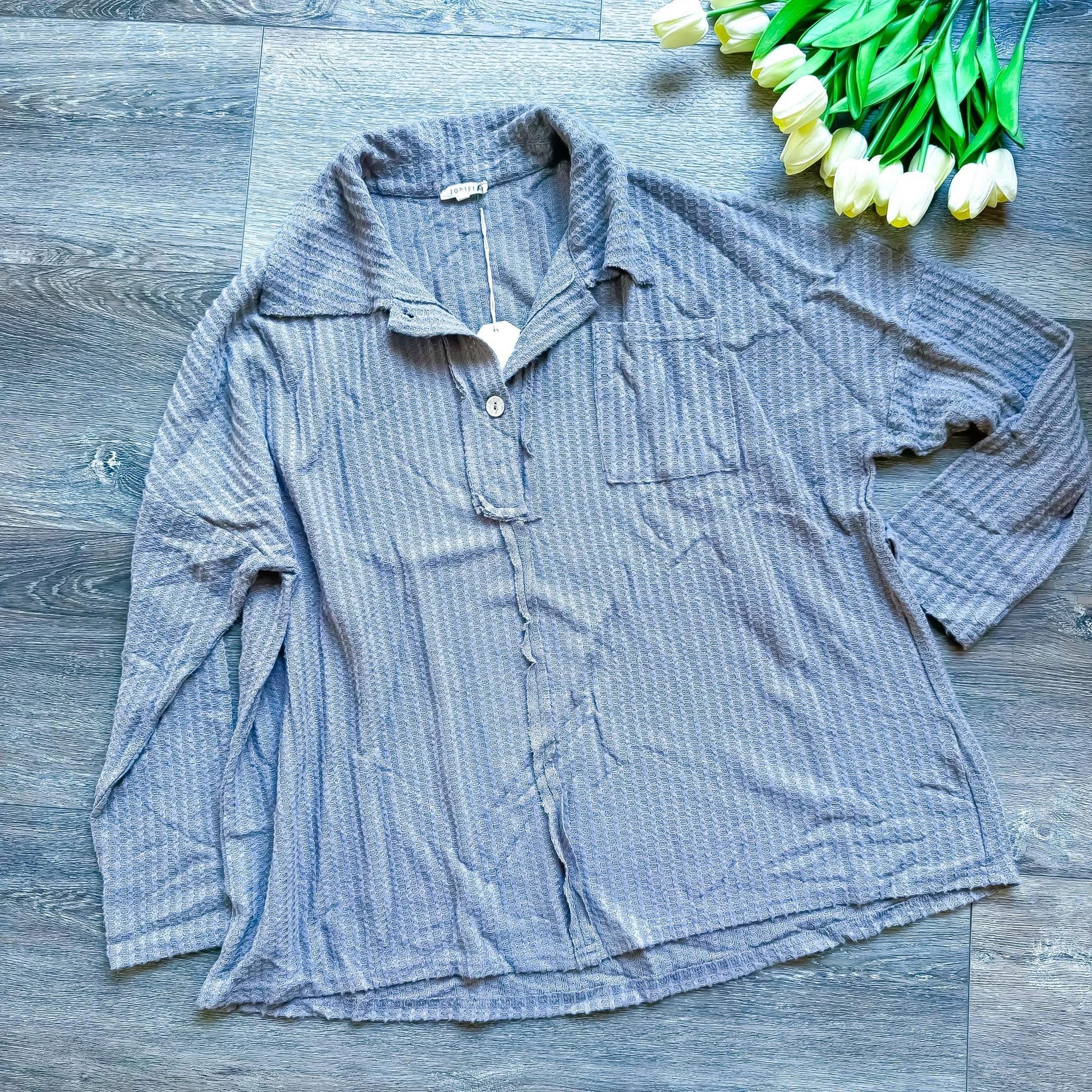 This button-up top will have you looking waffle-ly cool (see what we did there?) The oversized fit and long sleeves make it perfect for layering or wearing on its own. The textured waffle knit adds a touch of dimension to any outfit. Upgrade your wardrobe with this Jodifl top!