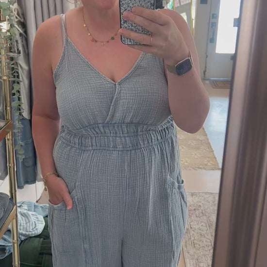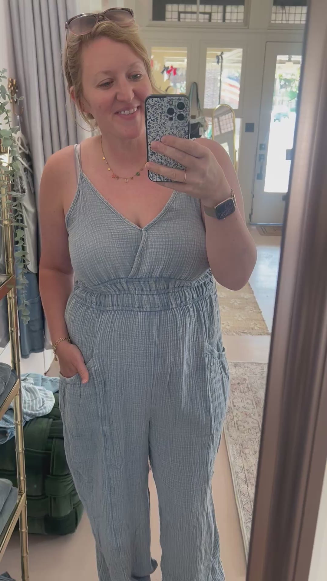 Upgrade your summer wardrobe with the Very J Cotton Gauze Jumpsuit! Featuring adjustable straps, side pockets (perfect for storing your phone or wallet), and an elastic waist for a comfortable and versatile fit. Slay in style this season with this must-have piece.